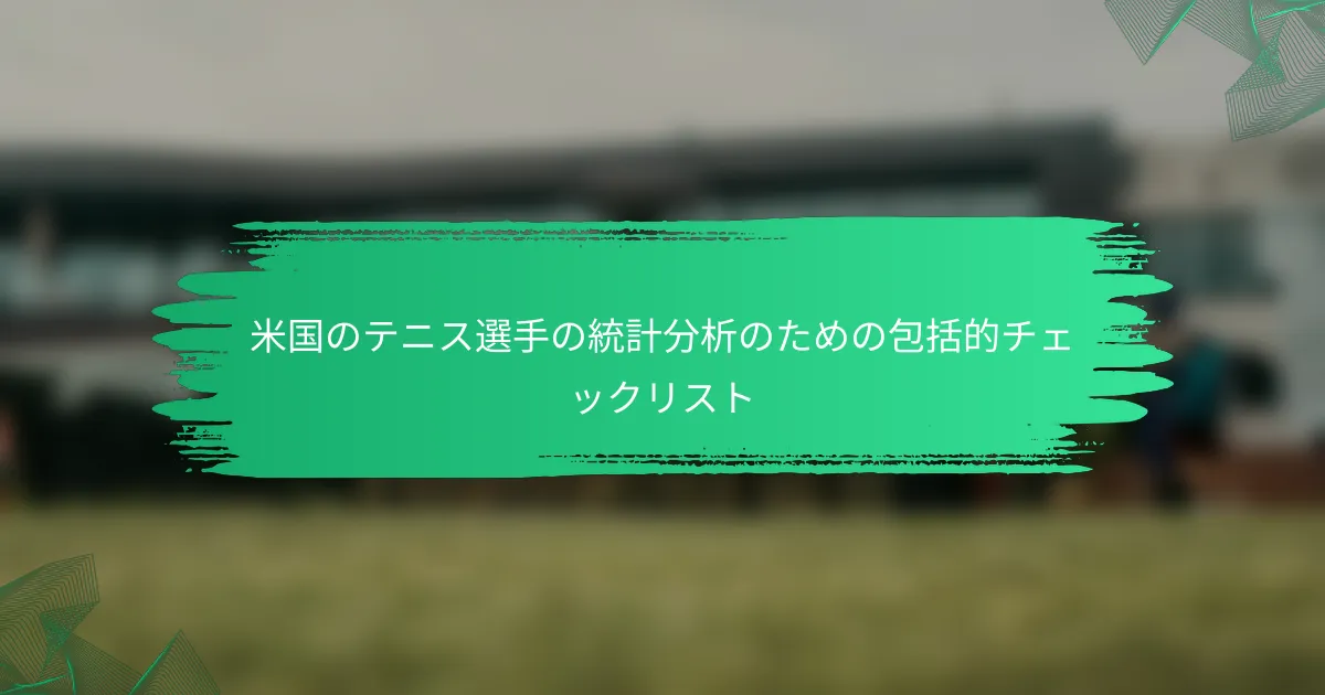 アメリカにおけるテニス選手の統計を分析するには、試合の勝率、サーブの統計、ブレークポイントのコンバージョン率などの重要な指標を含む包括的なアプローチが必要です。これらの統計は、選手のパフォーマンスや能力を明らかにするだけでなく、彼らの強みや弱みを浮き彫りにします。高度な指標や時間の経過に伴うトレンドを検討することで、コーチ、アナリスト、ファンは選手の潜在能力やコート上での全体的な効果を貴重な洞察を得ることができます。