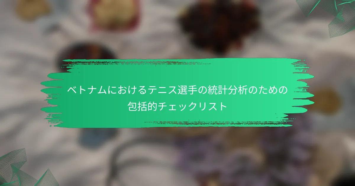 ベトナムでテニス選手の統計を収集するには、公式データベース、スポーツ分析プラットフォーム、ソーシャルメディア、地元のクラブなど、さまざまなリソースを活用することが含まれます。各ソースは、選手のパフォーマンスやトレンドに関する独自の洞察を提供します。