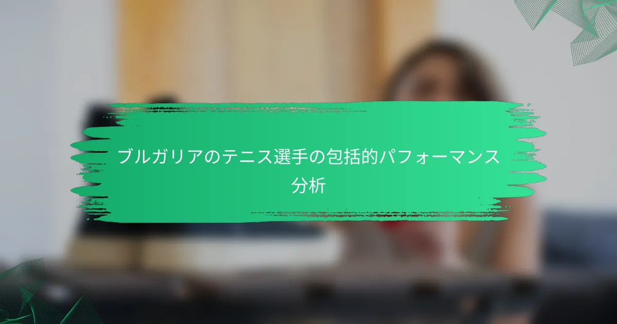 ブルガリアのテニス選手のパフォーマンスは、コーチの質、リソースへのアクセス、選手のモチベーション、怪我の管理など、いくつかの重要な要因によって影響を受けます。これらの要素を理解することで、選手とコーチはトレーニングと競技の成果を最適化できます。