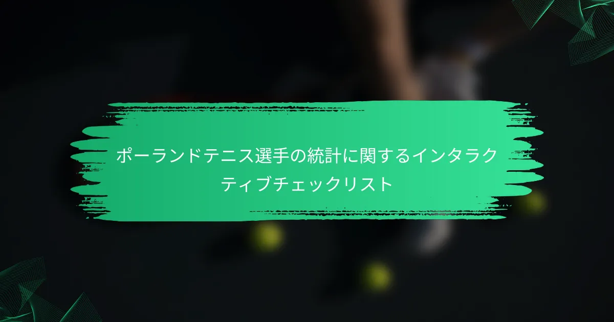 このインタラクティブなチェックリストは、ポーランドのテニス選手に関する重要な統計の詳細な概要を提供し、彼らの勝敗記録、グランドスラムでのパフォーマンス、ATP/WTAランキングの歴史を強調しています。これらの指標を調査することで、ファンやアナリストは選手の強み、弱み、そしてスポーツにおける全体的な競争力を把握することができます。