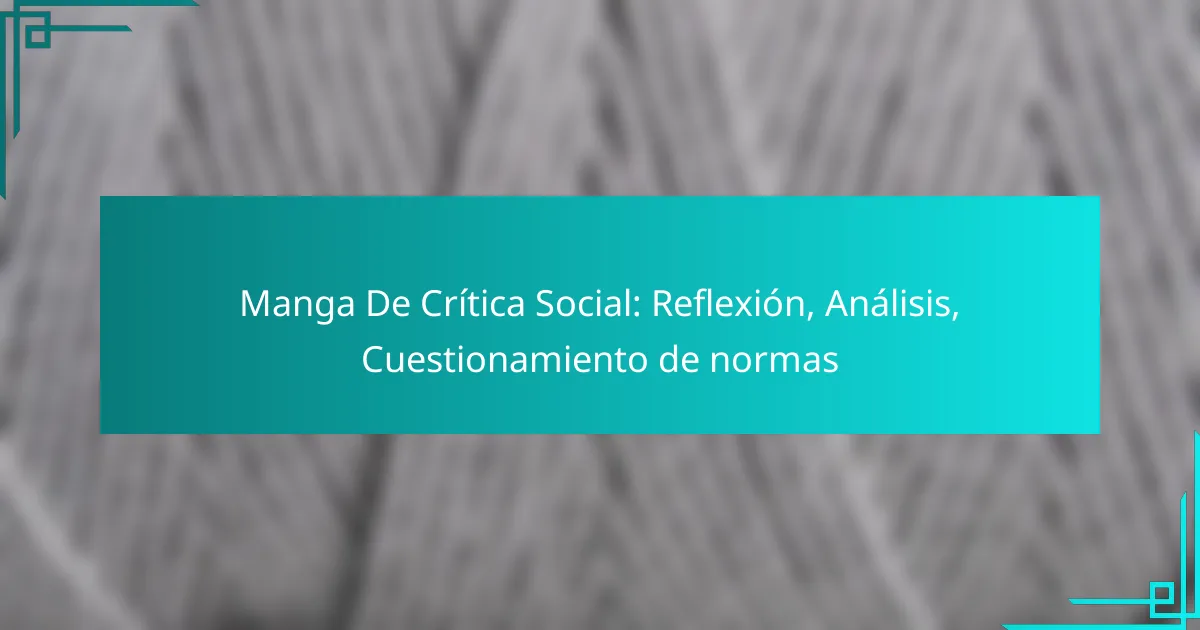El análisis del manga de crítica social implica examinar sus temas, personajes y elementos visuales para entender cómo cuestionan normas sociales y políticas. Este enfoque permite desentrañar las intenciones del autor y el impacto en el lector.